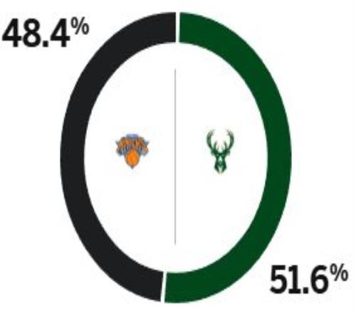 ESPN预测明日比赛胜率:尼克斯48.4%,雄鹿51.6%
