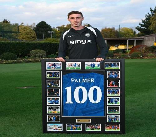 当地时间10月28日,切尔西官方晒照,俱乐部向这五名球员赠送了百场里程碑纪念礼物,相框主体为一件印有球员名字和“100”字样的球衣,此外还有球员们切尔西生涯的高光时刻图集。