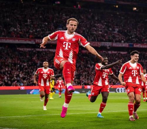 本赛季的凯恩又一次火力全开,前8轮德甲狂轰12球,再算上欧冠、德国杯和弗朗茨·贝肯鲍尔超级杯,开季14场各项赛事打进22球,效率惊人!其中联赛第5轮拜仁主场4比0大胜不来梅,凯恩造点并亲自操刀命中,德甲生涯连续18次主罚点球弹无虚发,从未罚丢;下半场他又在门前右脚捅射完成梅开二度,打进拜仁生涯100球,超越C罗和哈兰德,成为本世纪欧洲五大联赛为单一俱乐部最快打进百球的球员,只用了104场比赛。