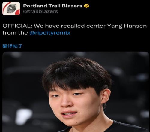 NBA方面在今天传来了一个消息:波特兰开拓者队官宣,要召回杨瀚森。