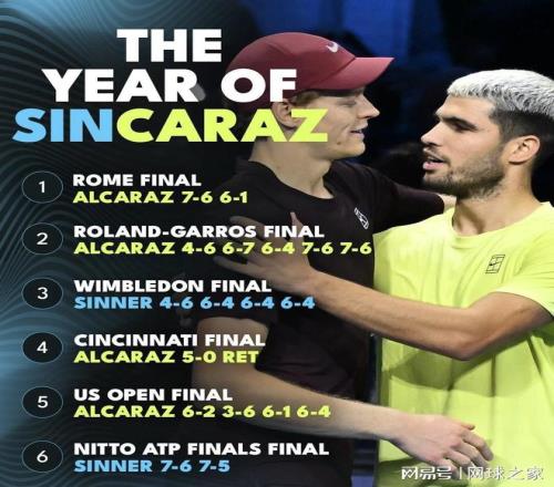 自网球进入公开赛年代以来,“二人转”的传奇总是最动人心魄的篇章。从桑普拉斯与阿加西的瑜亮之争,到费德勒与纳达尔绵延十余年的优雅与力量的对决,再到德约科维奇与纳达尔共同铸就的、以钢铁意志为底色的巅峰。如今,阿尔卡拉斯与辛纳,这对分属西班牙与意大利的年轻王者,正以雷霆万钧之势,在2025赛季的网坛上空,勾勒出一幅名为“辛卡决”的全新星图。