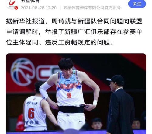 需要指出,作为周琦昔日老东家,周琦与新疆男篮之间早就有了巨大的矛盾,矛盾大到当年周琦不惜为离开新疆男篮鱼死网破,先是去NBL打了一年半,随后就彻底撕破脸举报了新疆男篮主体混同,违反工资帽规定等事儿。
