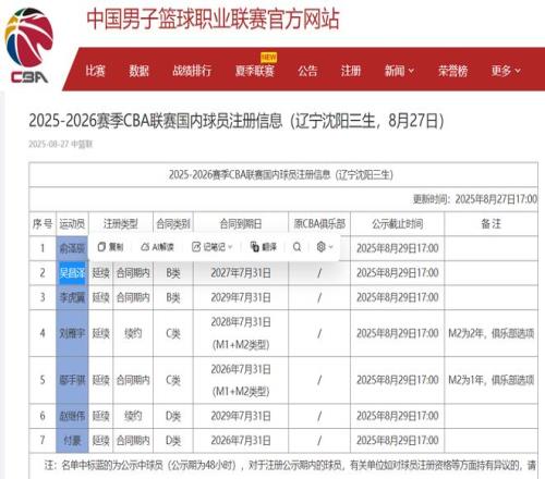 昨天晚上,辽宁队上报了CBA新赛季球员注册大名单,从这份大名单来看,一共有七名球员,拿CBA顶薪合同的付豪、赵继伟都在列。上赛季在吉林队效力的锋线球员吴昌泽,也在其中,这也充分说明了,辽宁队已经提前预防了张镇麟的离队准备。